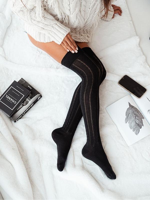 Nagyon csajos, pihe-puha pamut csipkéből készített, egyedi, térd felettig érő vastag pamut combzokni.